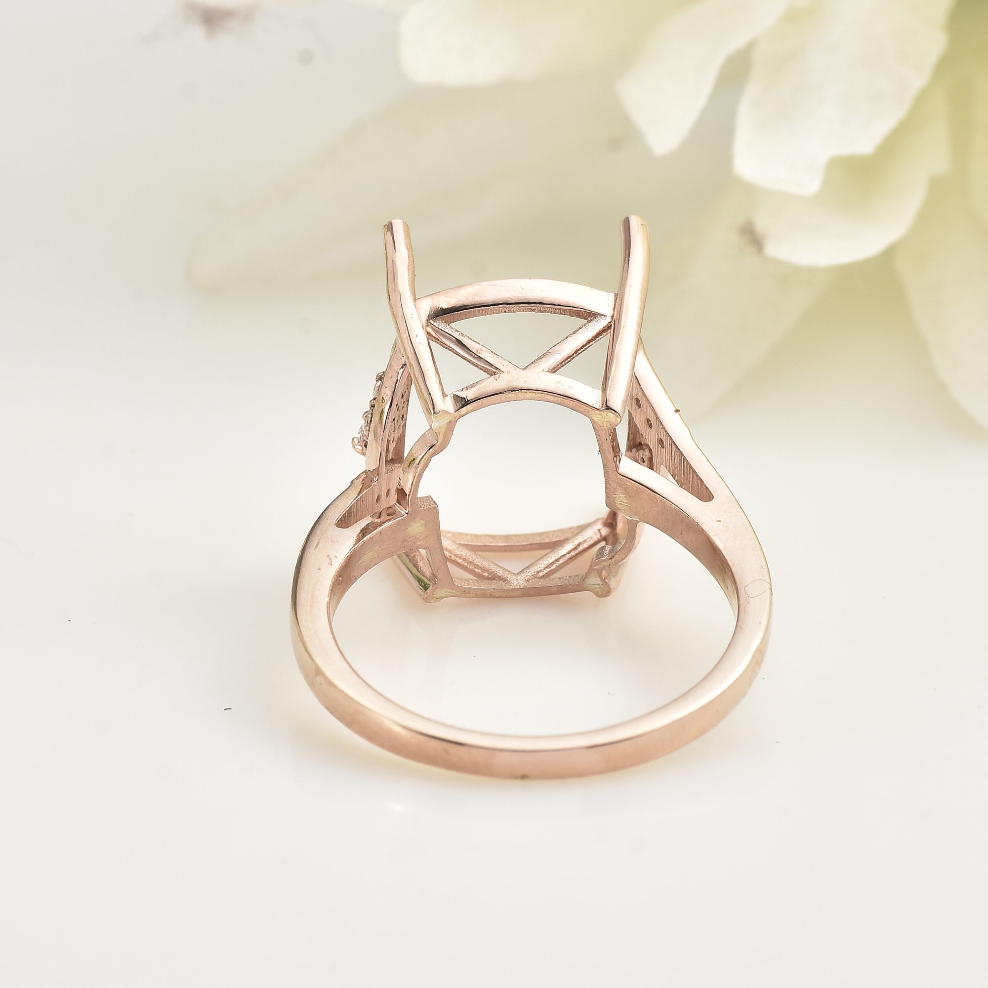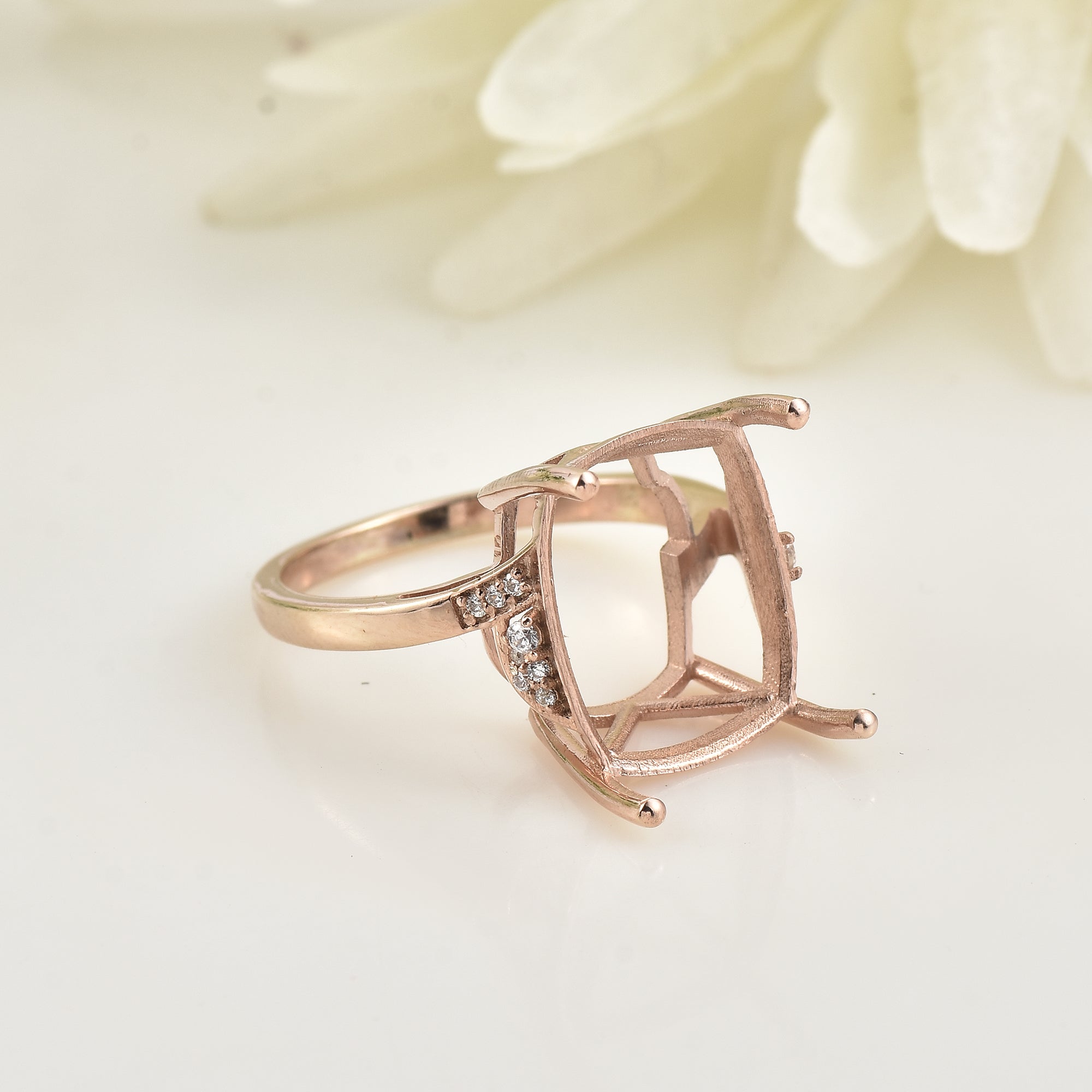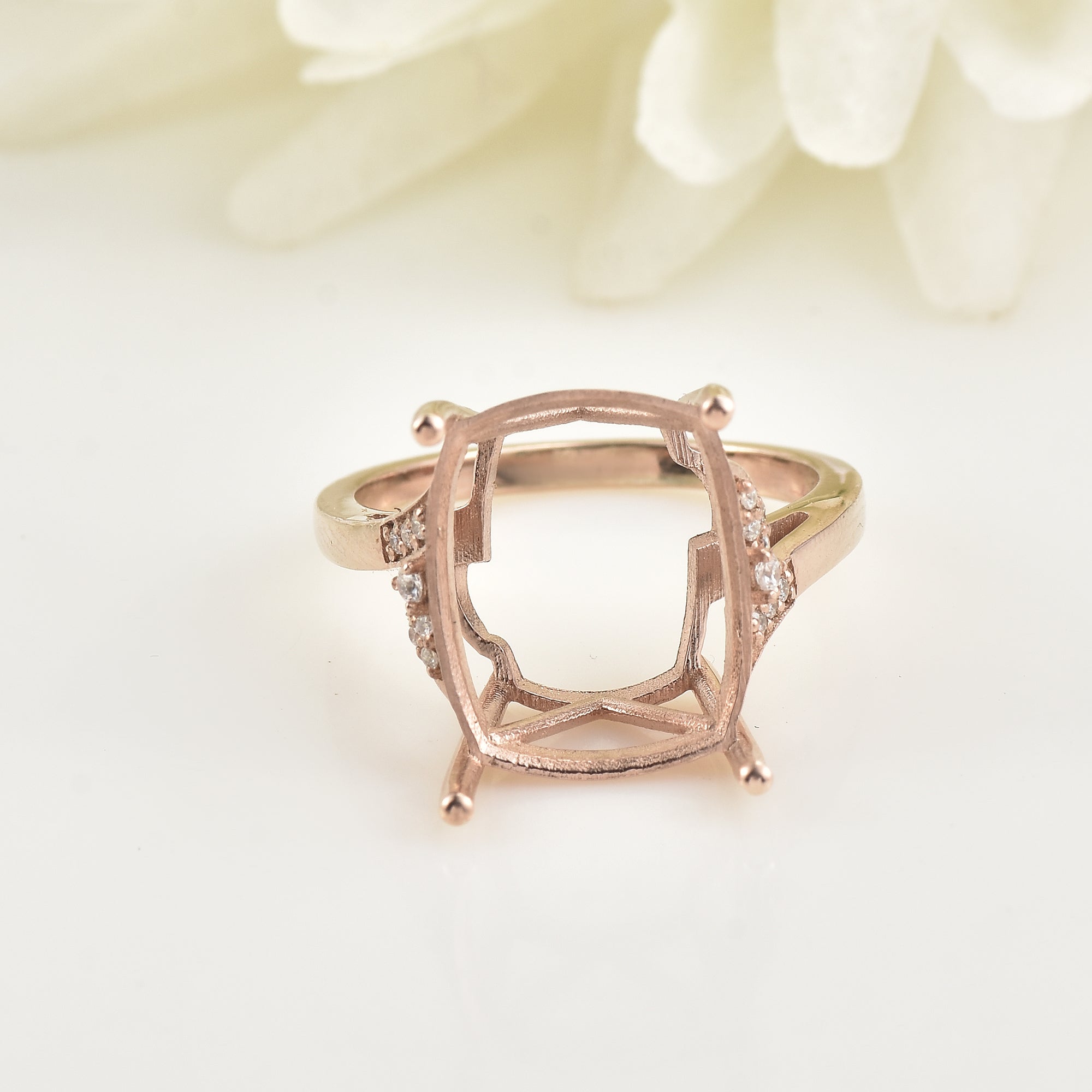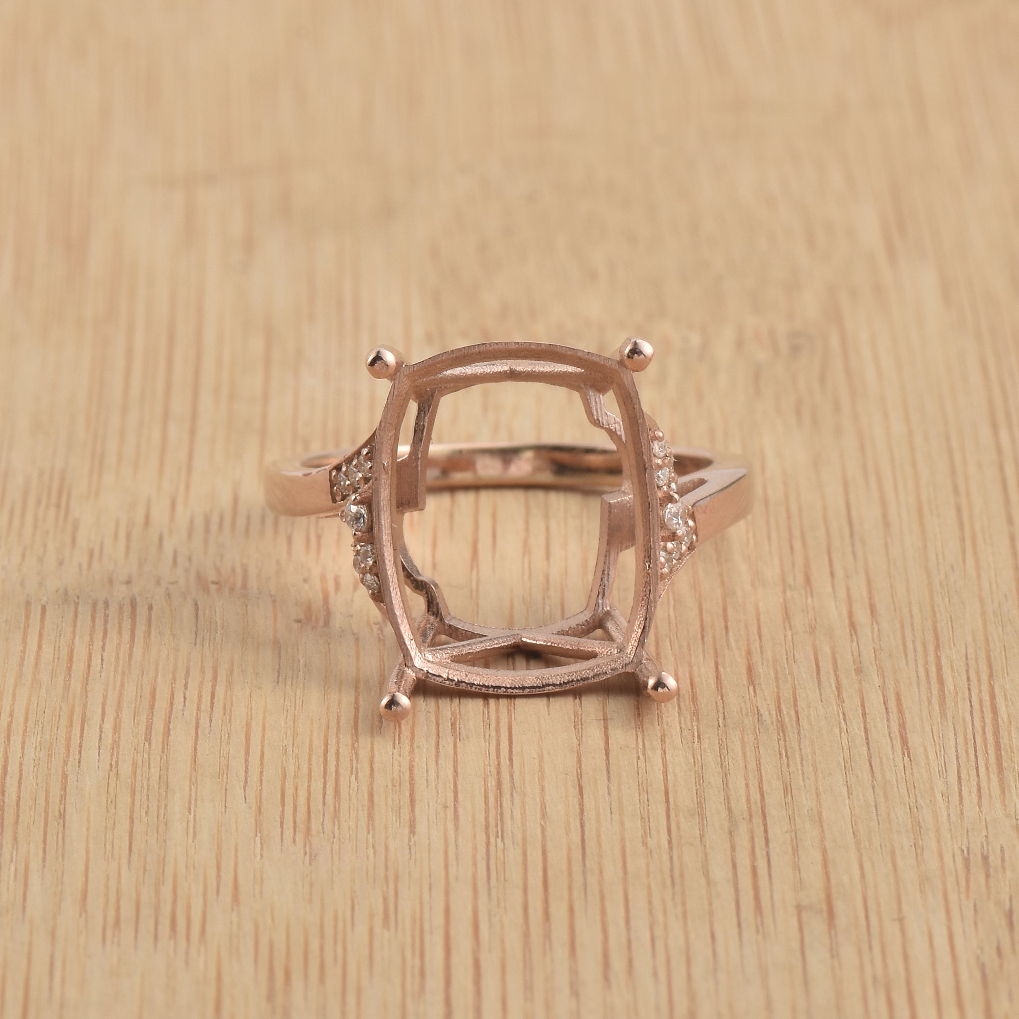 12×16mm Cushion Cut Semi Mount Ring 925 Sterling Silver Rose Plated