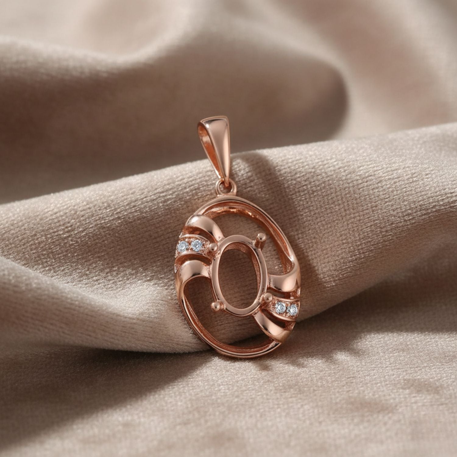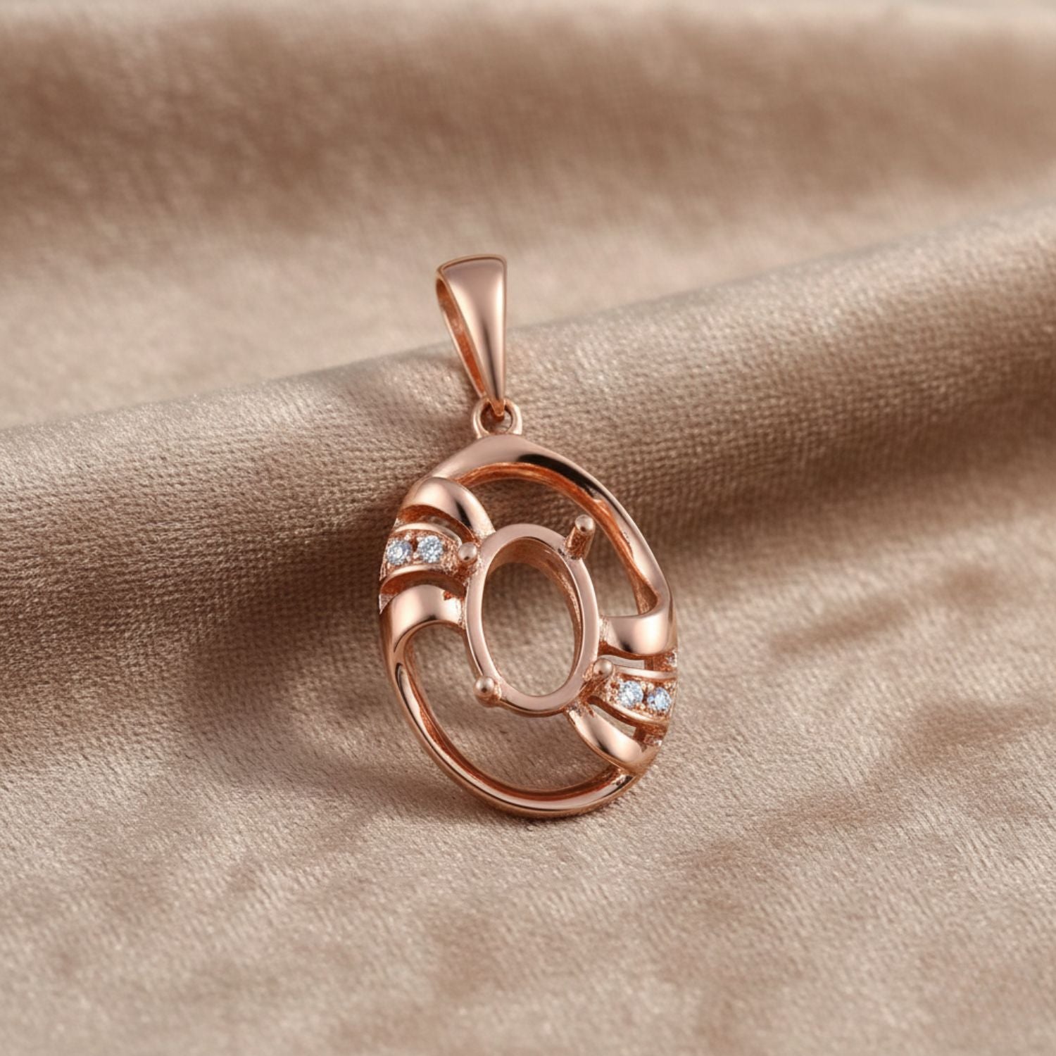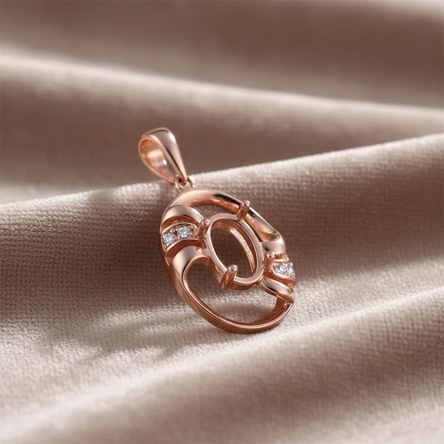 Modern Rose Gold Oval Semi Mount Pendant – 12x10mm Gem Setting