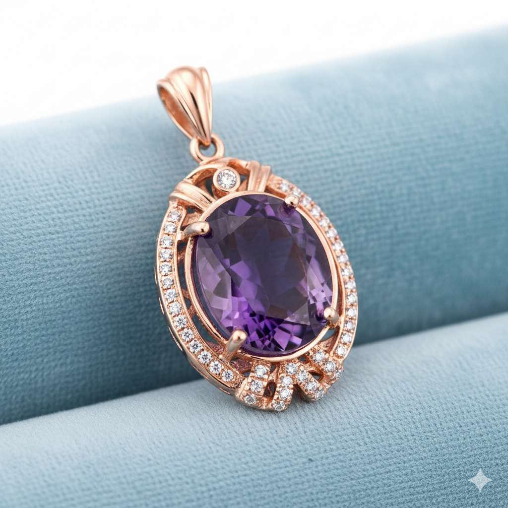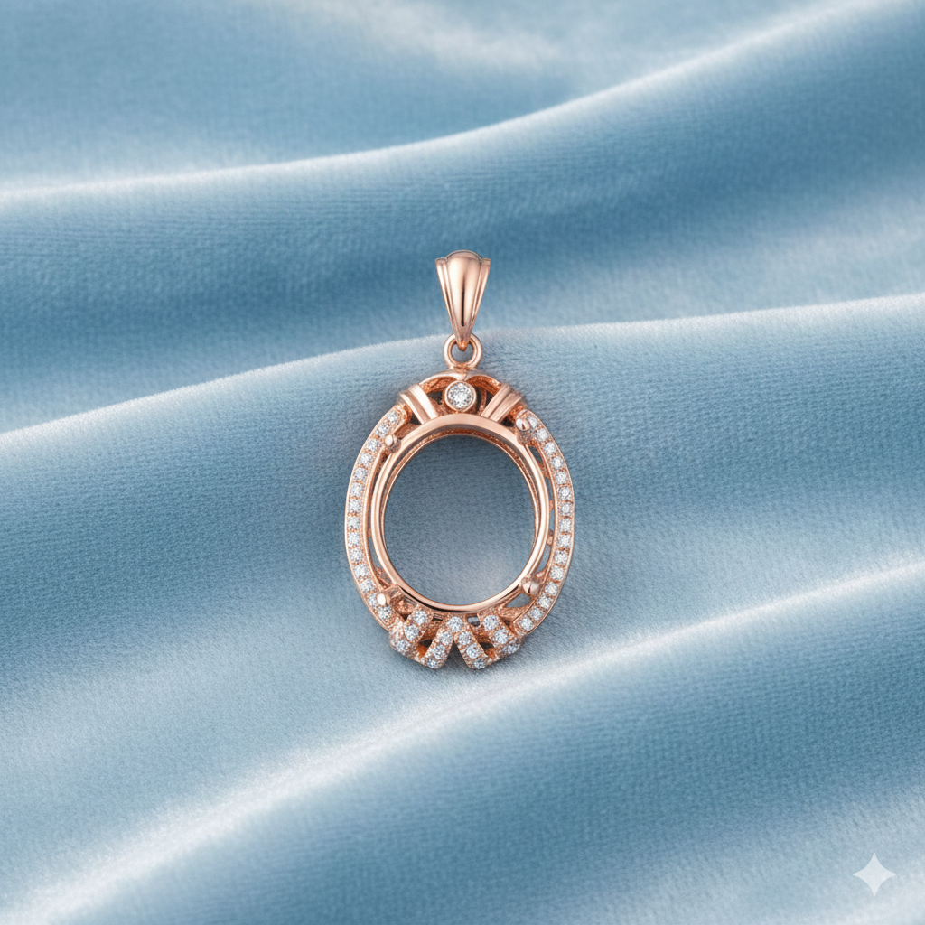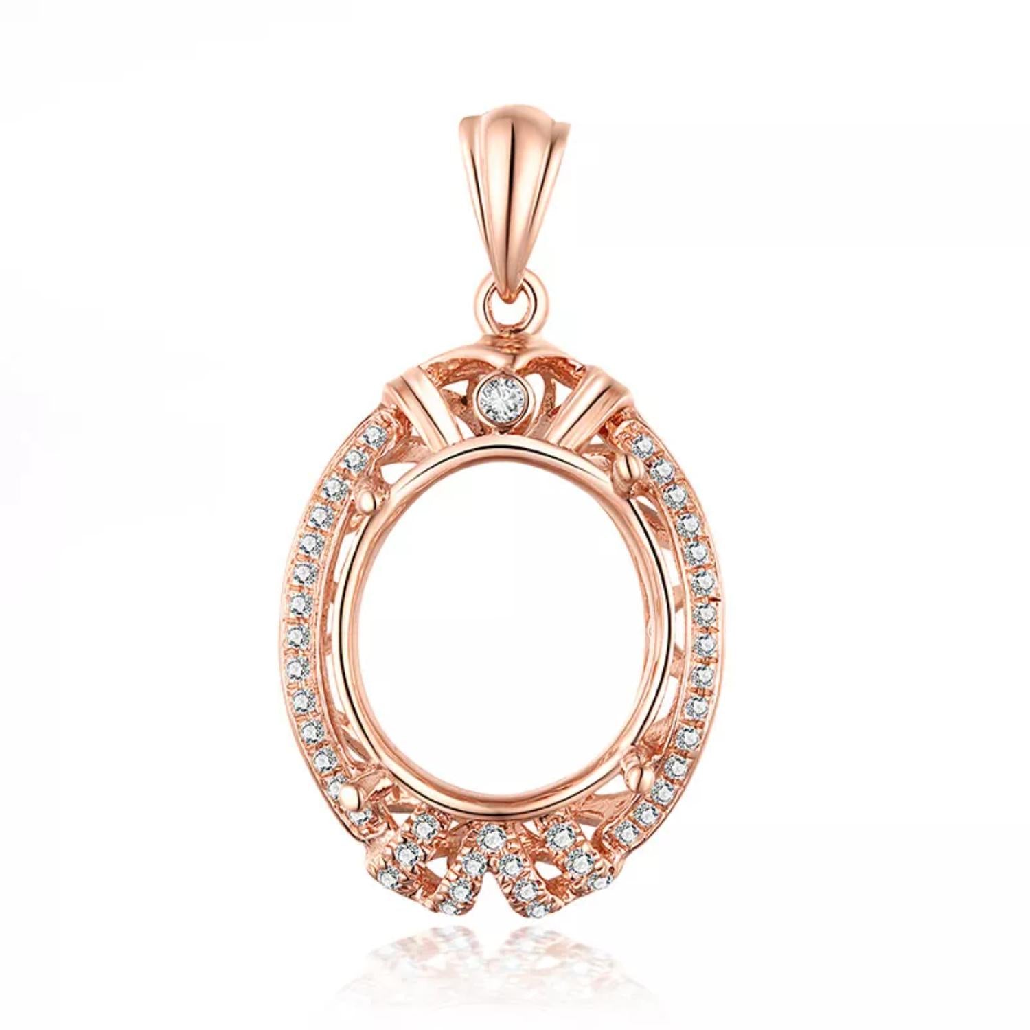 Vintage Rose Gold Oval Halo Semi Mount Pendant – 13x11mm Gemstone Setting