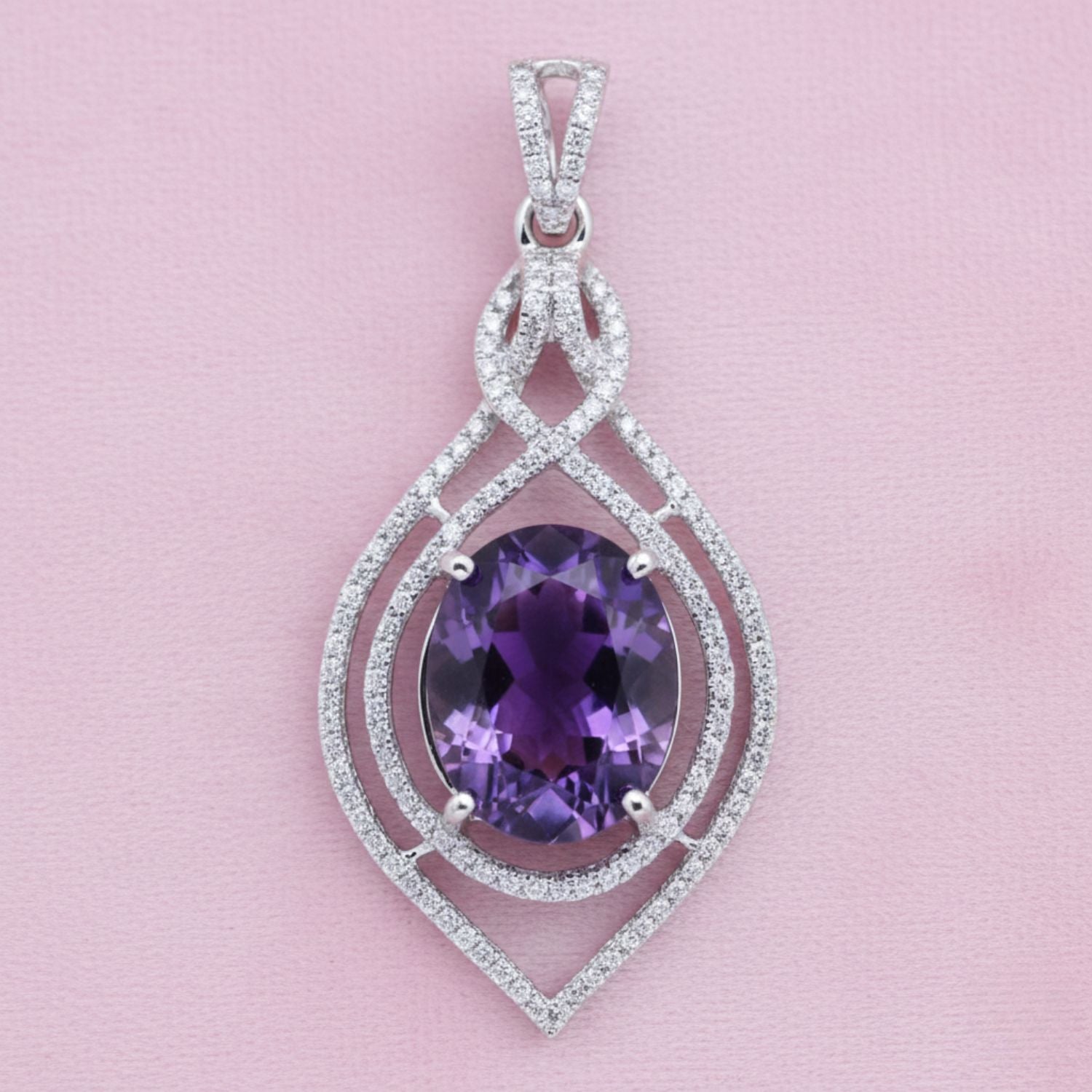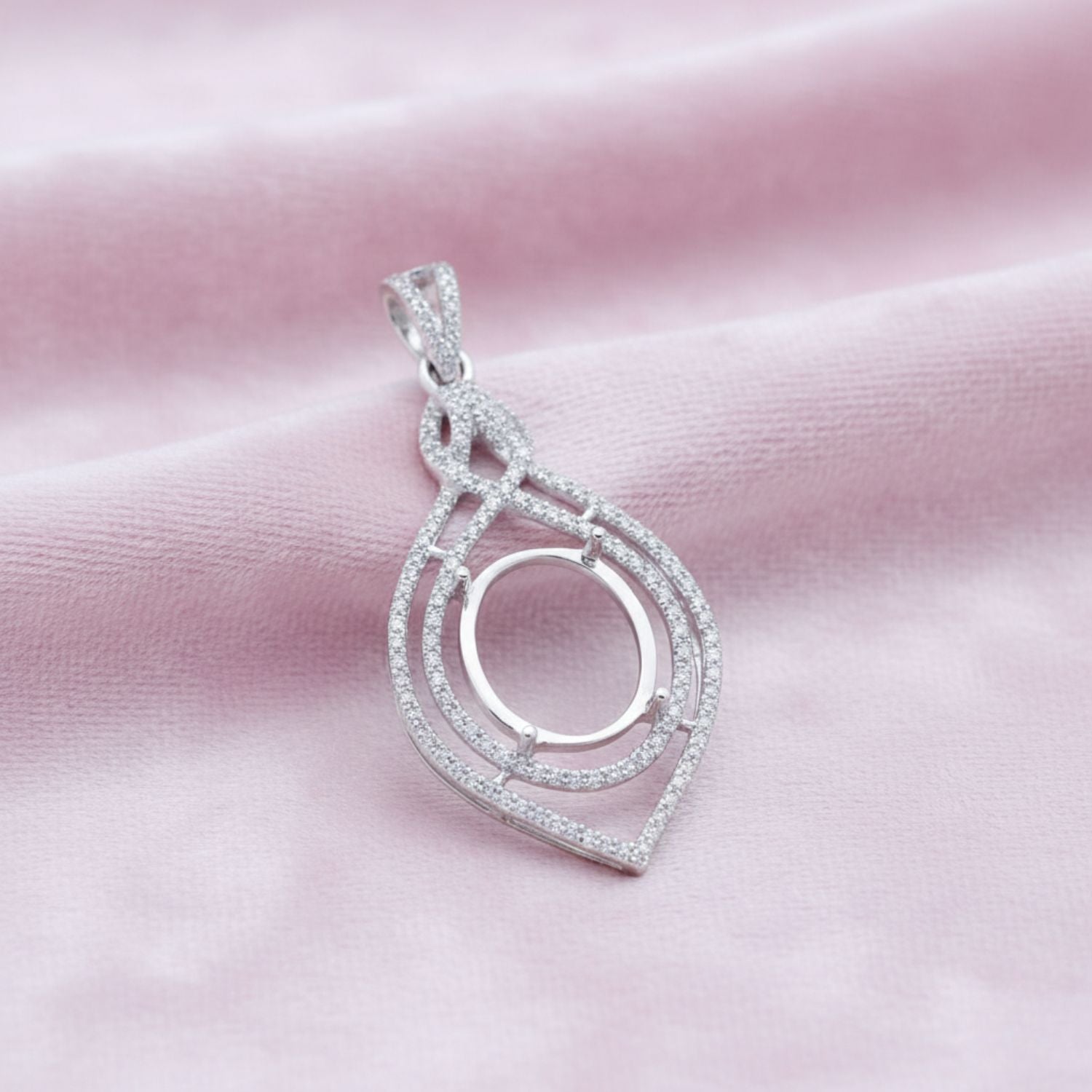 Showcase your favorite gemstone in this stunning 14x12mm oval semi mount pendant, crafted from premium 925 sterling silver. The pendant features an intricate, infinity-inspired drop silhouette, embellished with sparkling micro CZ stones for added brilliance. Its elongated, artistic design creates a luxurious focal point, making it an ideal choice for statement jewelry lovers.