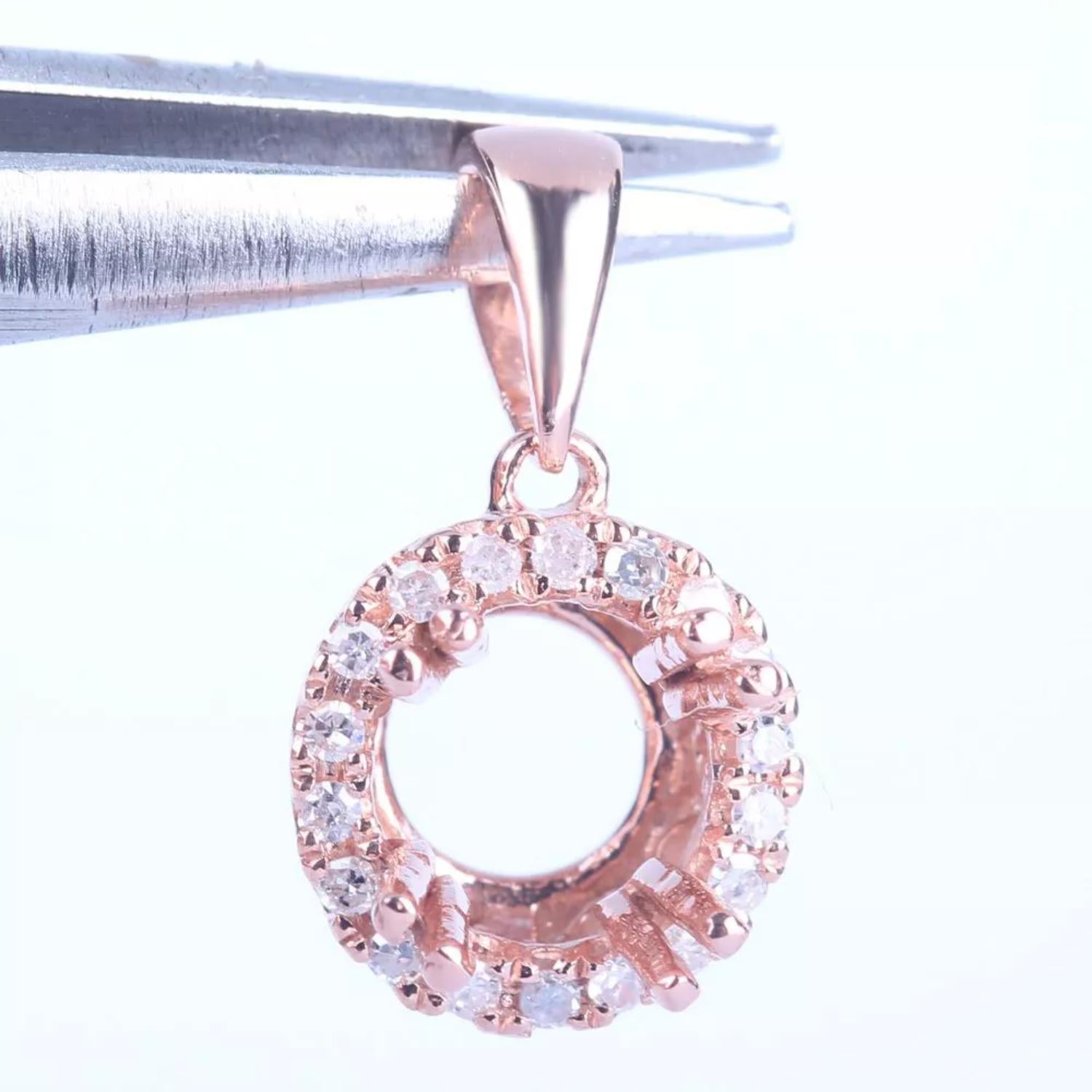 Showcase your gemstone beautifully with this delicate 5mm round semi mount pendant, crafted in 925 sterling silver and finished with a luxurious rose gold plating. The pendant features a sparkling CZ halo that adds brilliance and charm while highlighting your custom stone.