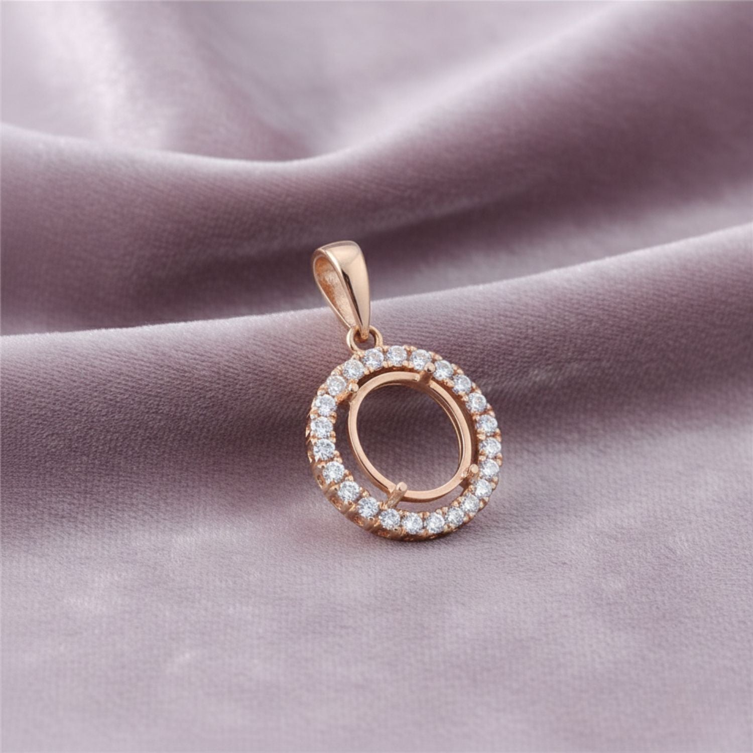 Elegant Rose-Plated Round Semi Mount Pendant – 5mm Gem Setting