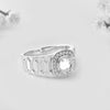 Embellished with shimmering accent stones around the halo