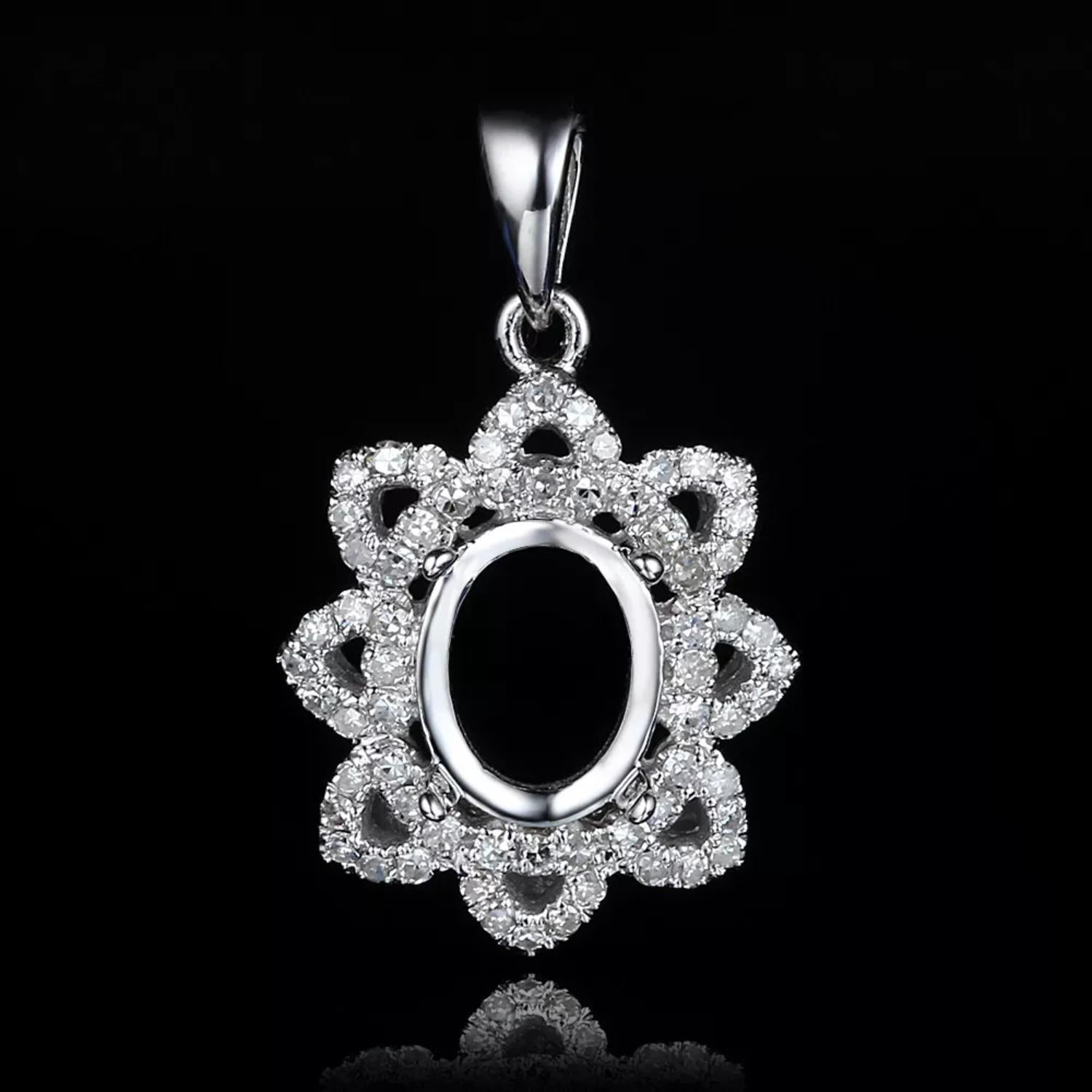 Floral Halo Oval Semi Mount Pendant – 9x7mm Gemstone Setting