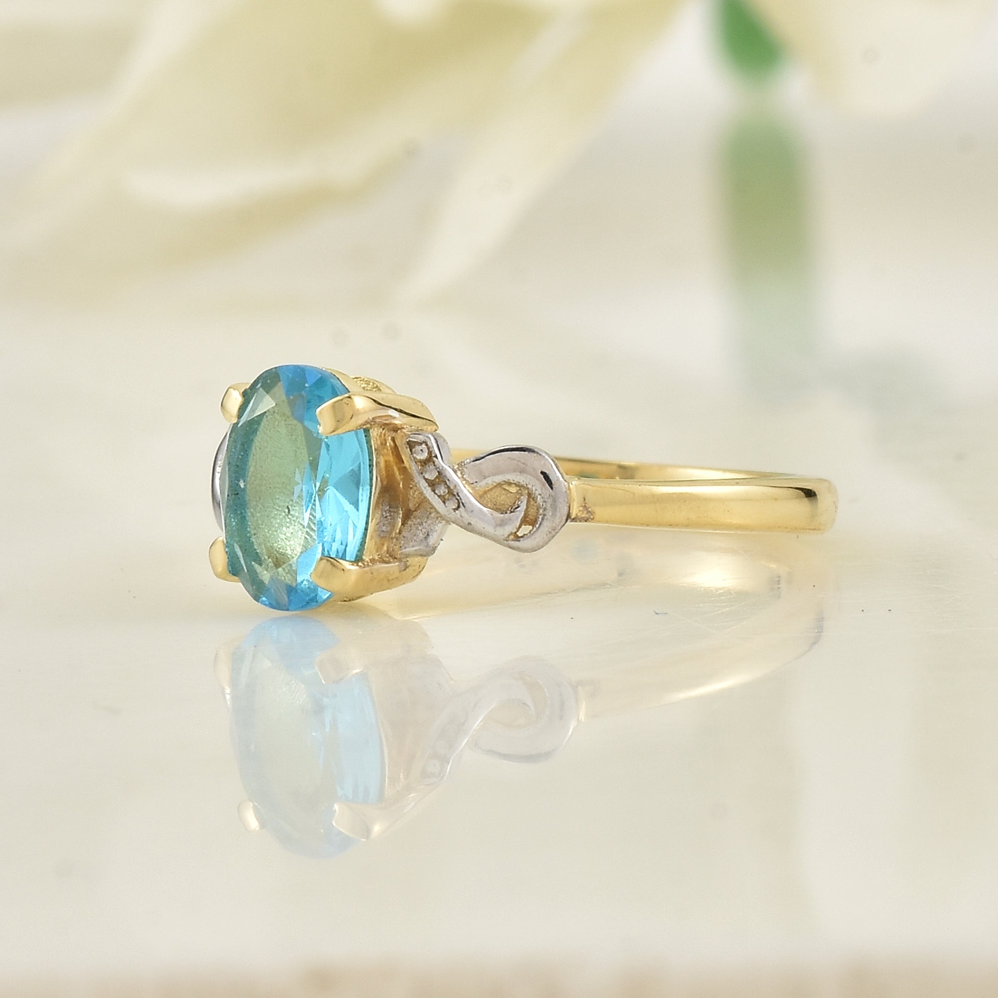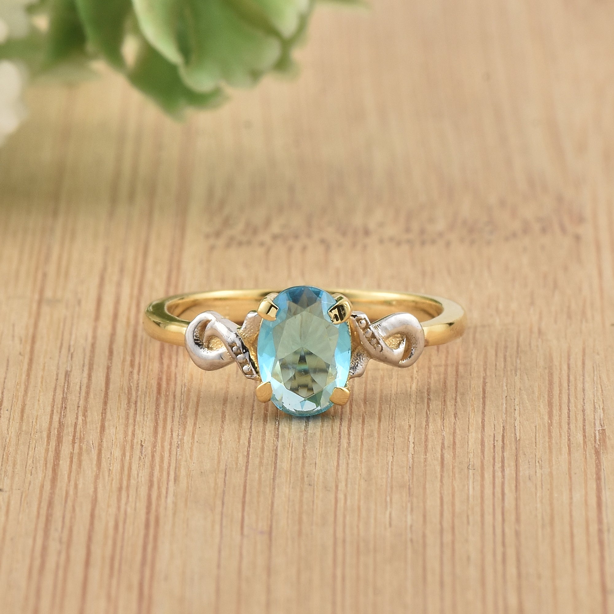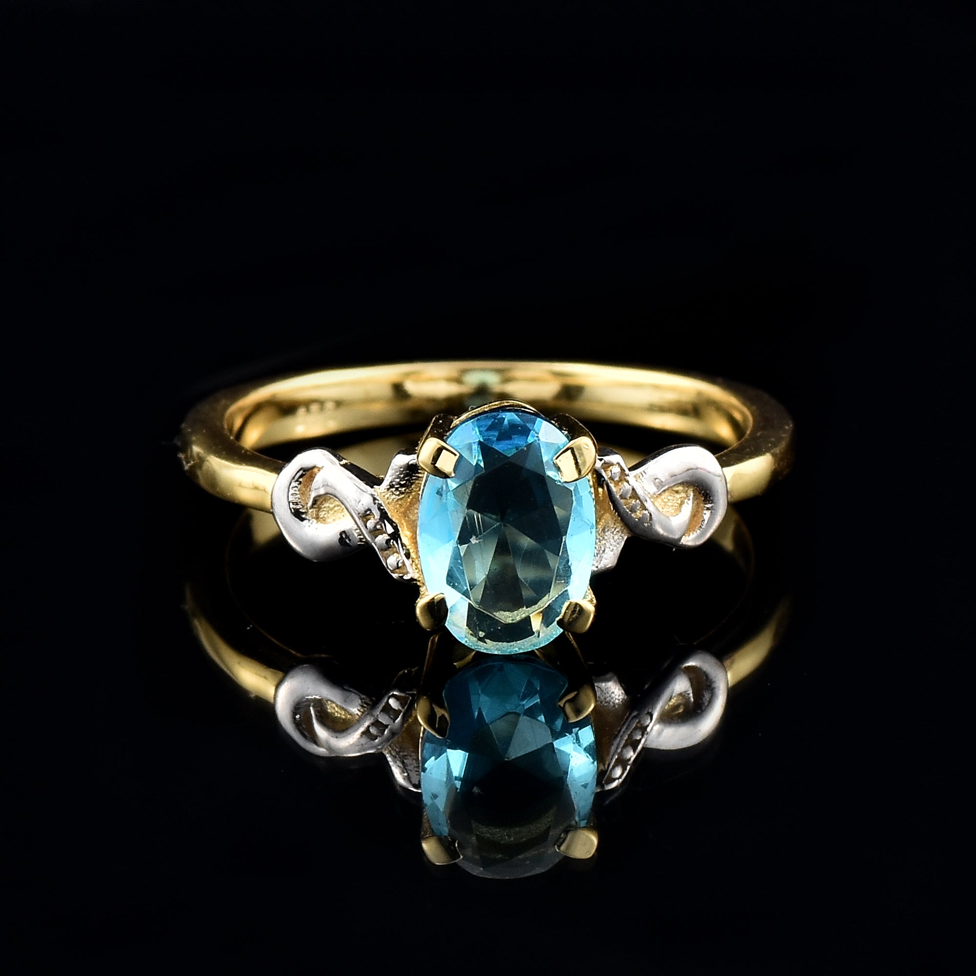 0.65 Carat Oval Blue Topaz Solitaire Ring 925 Sterling Silver Gold Plated