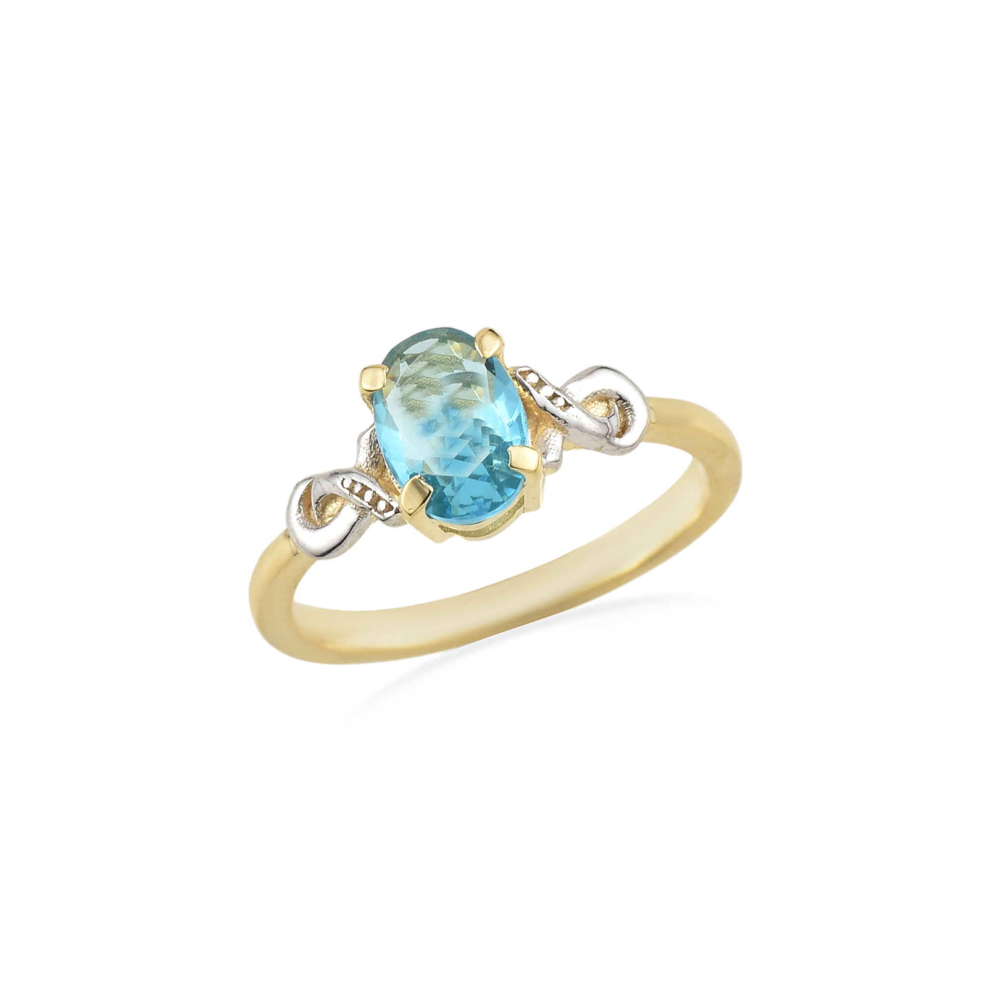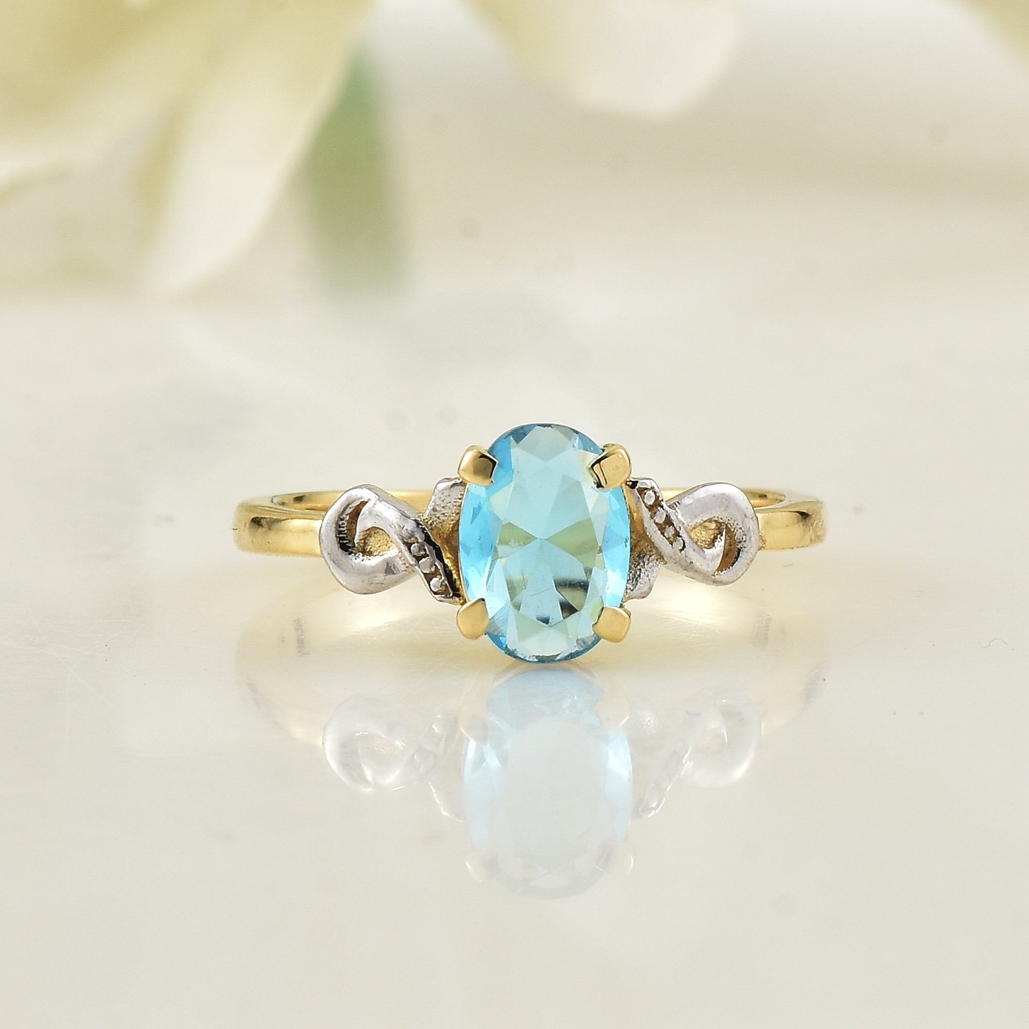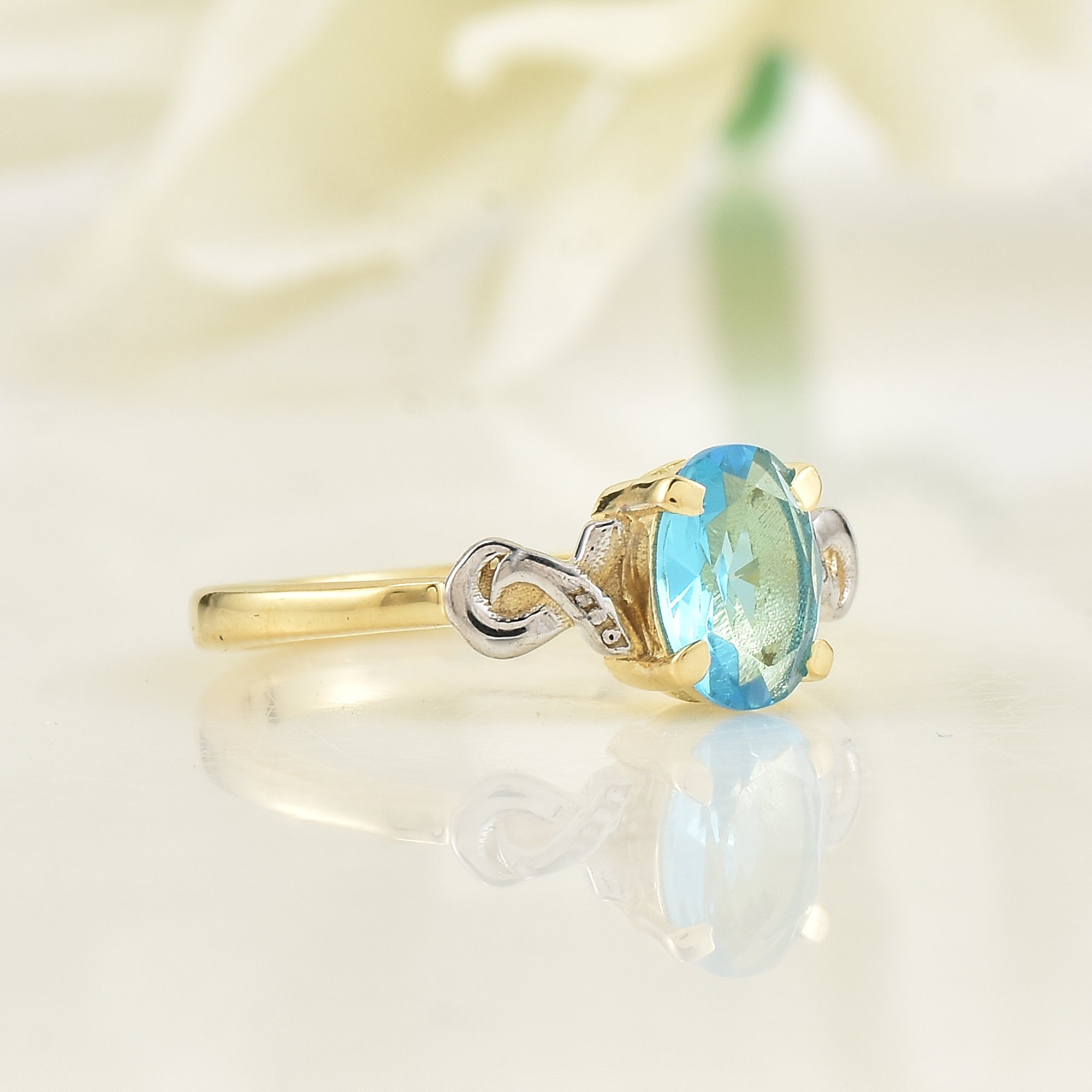 0.65 Carat Oval Blue Topaz Solitaire Ring 925 Sterling Silver Gold Plated