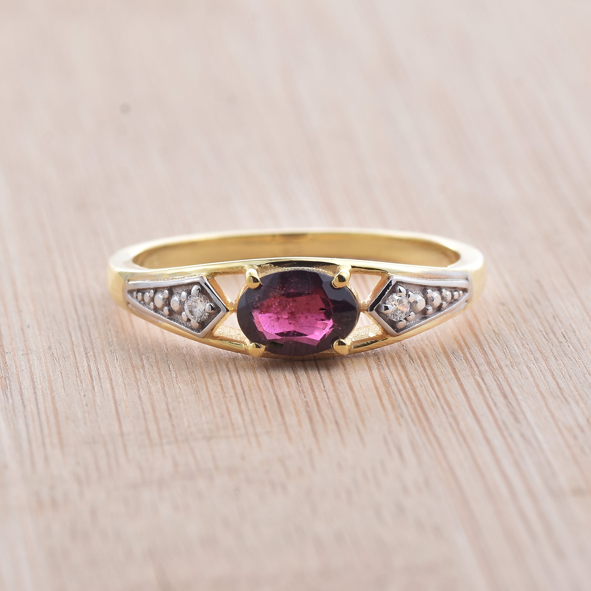 1.00 Ct Oval Rhodonite Garnet Solitaire Ring 925 Sterling Silver Gold Plated