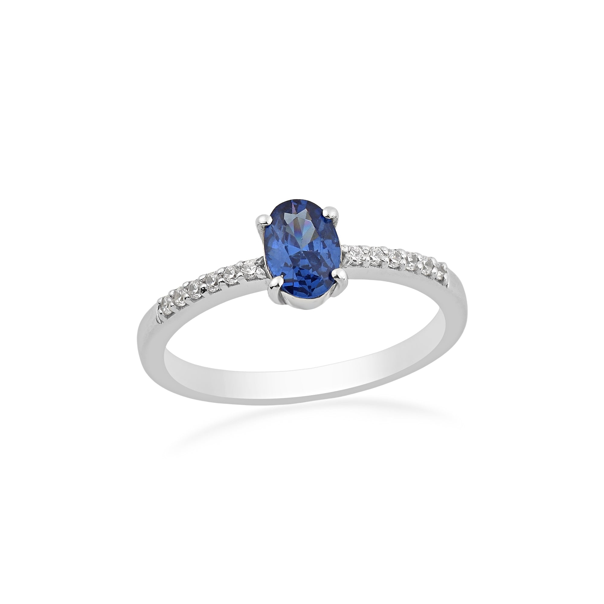Showcasing a captivating violet-blue hue, this 1.00 carat oval tanzanite ring is a timeless statement of elegance. The 7×5 mm natural tanzanite center stone is set in solid 925 sterling silver, accented by a delicate band of sparkling white topaz for added brilliance. Perfect for engagements, anniversaries, or special occasions, this ring blends sophisticated style with enduring beauty.