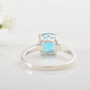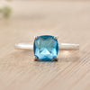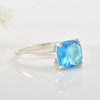 This captivating ring features a bold 8x8mm cushion-cut Swiss blue topaz, set gracefully in a sleek sterling silver band. The gemstone’s brilliant sky-blue hue radiates sophistication, while the four-prong setting ensures durability and security. Perfect as a December birthstone piece, a promise ring, or a gift for someone special, this ring adds a touch of elegance to both everyday wear and formal occasions.