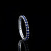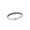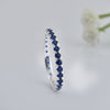 This elegant Blue Sapphire eternity ring showcases 0.90 carats of sparkling 2x2mm round-cut sapphires set gracefully in a full circle design. Each deep blue gemstone radiates a timeless allure, symbolizing loyalty, strength, and wisdom.