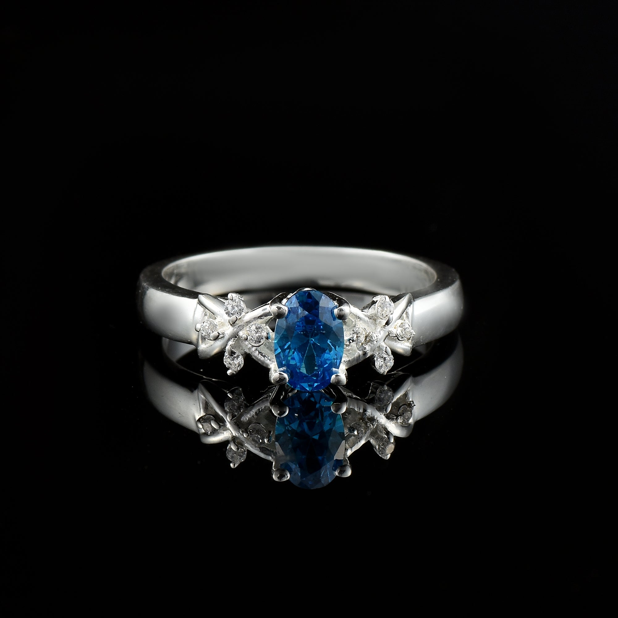 0.50 Ct Oval Shape London Blue Topaz Vine Leaf Ring 925 Sterling Silver